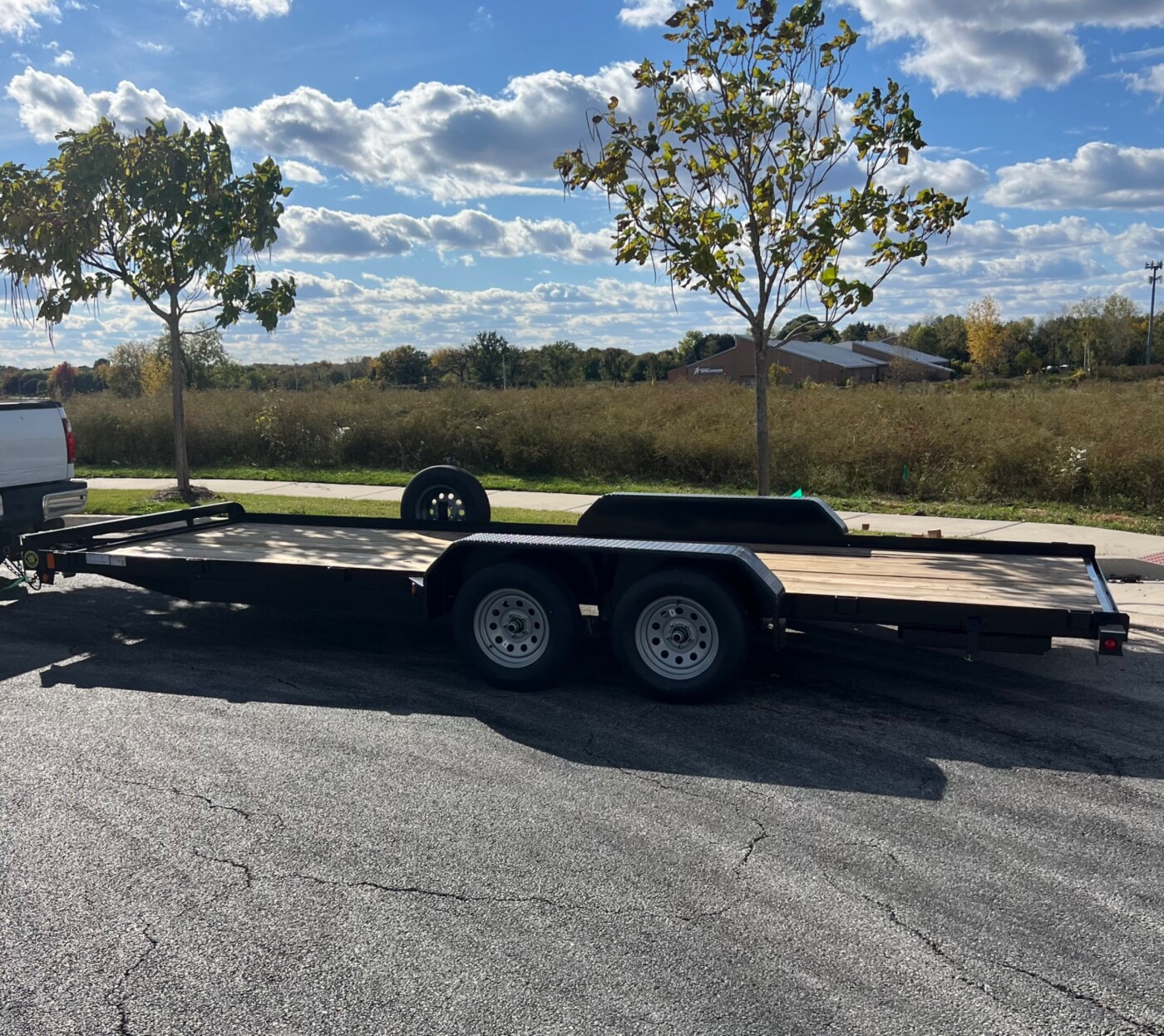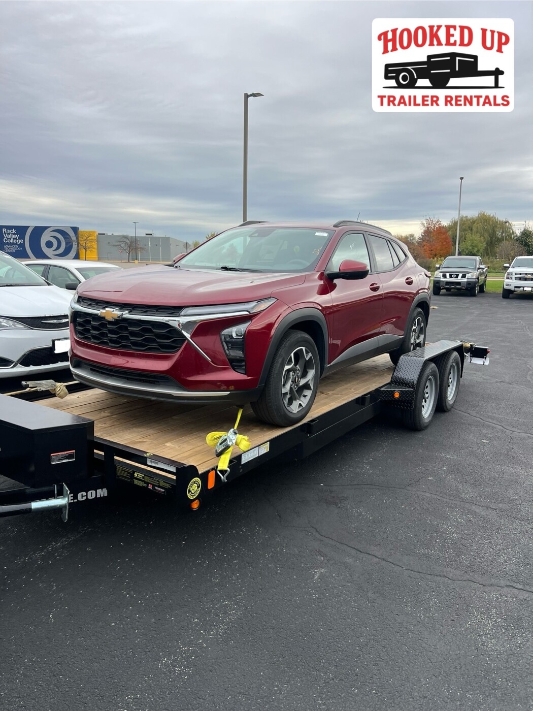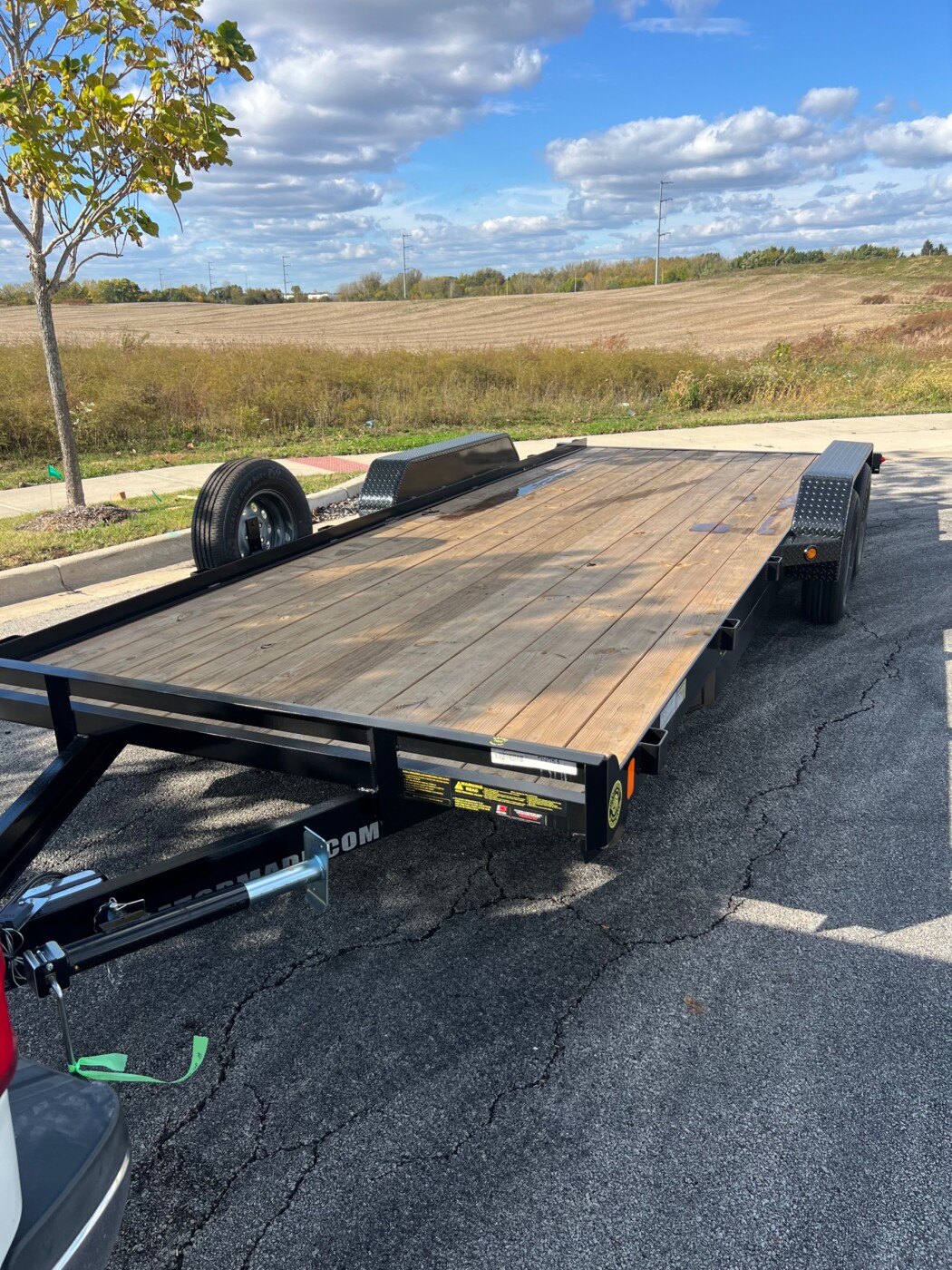 20ft deck car hauler. With slide in ramps. Included in rental is spare tire, roadside tool kit, and tie down straps(4). The trailer is available 24/7 with contactless pickup and drop off.