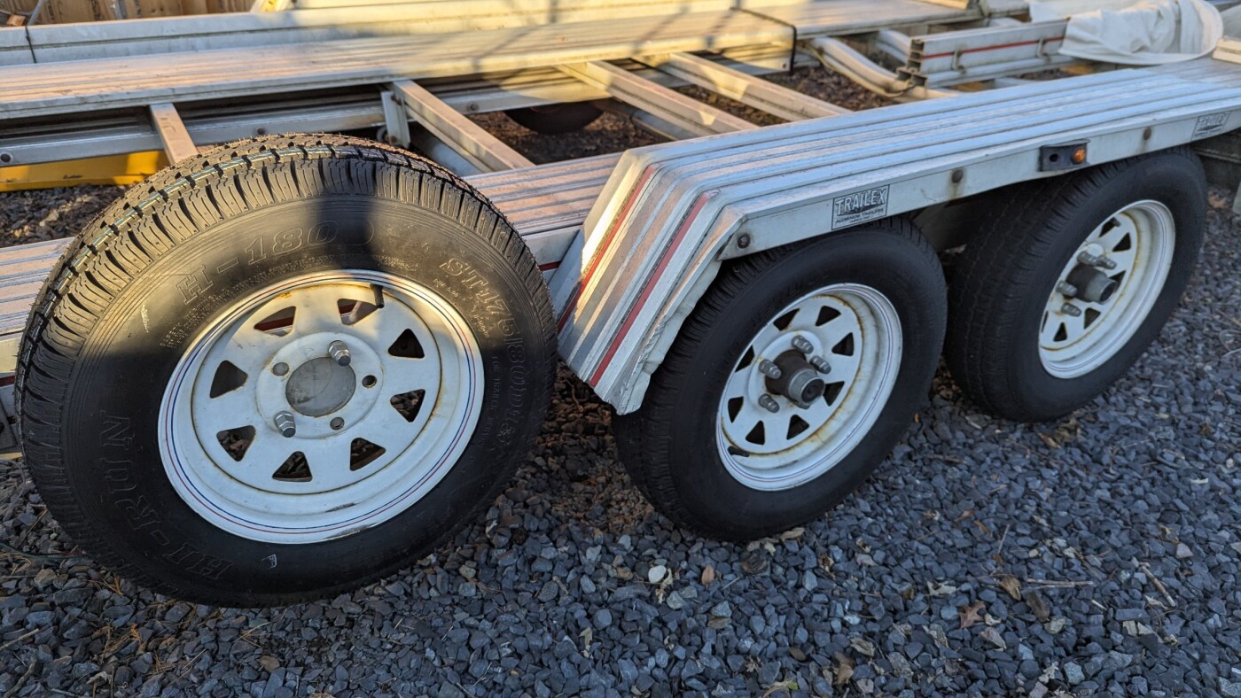 Trailer is a very light aluminum Trailex CT-7541 sports car hauler. Equipped with electric brakes on both axles, wireless brake controller, tire rack, long ramps (stored on-board) for low clearance cars. Fully modernized lights, recent tires. Rental includes wireless trailer brake controller, car tie down straps, and/or winch, if desired.