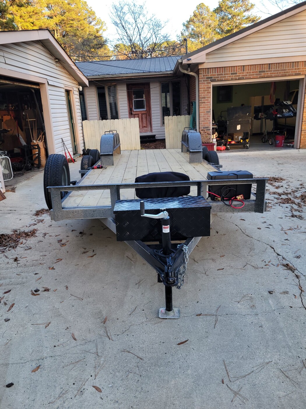BOTH Fenders Removeable. Wood floor, ramps in rear for convenience. 2 - 3500 lb axles. Brakes on rear axle.