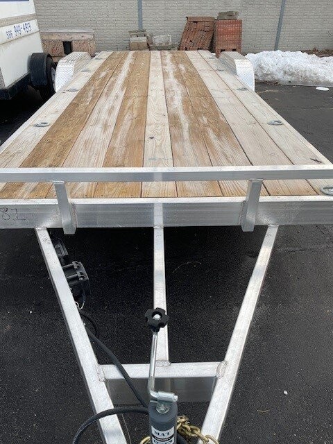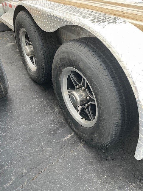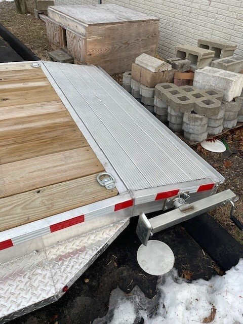 22 ft 10,000 lb aluminum car hauler. Has axle straps. No winch.