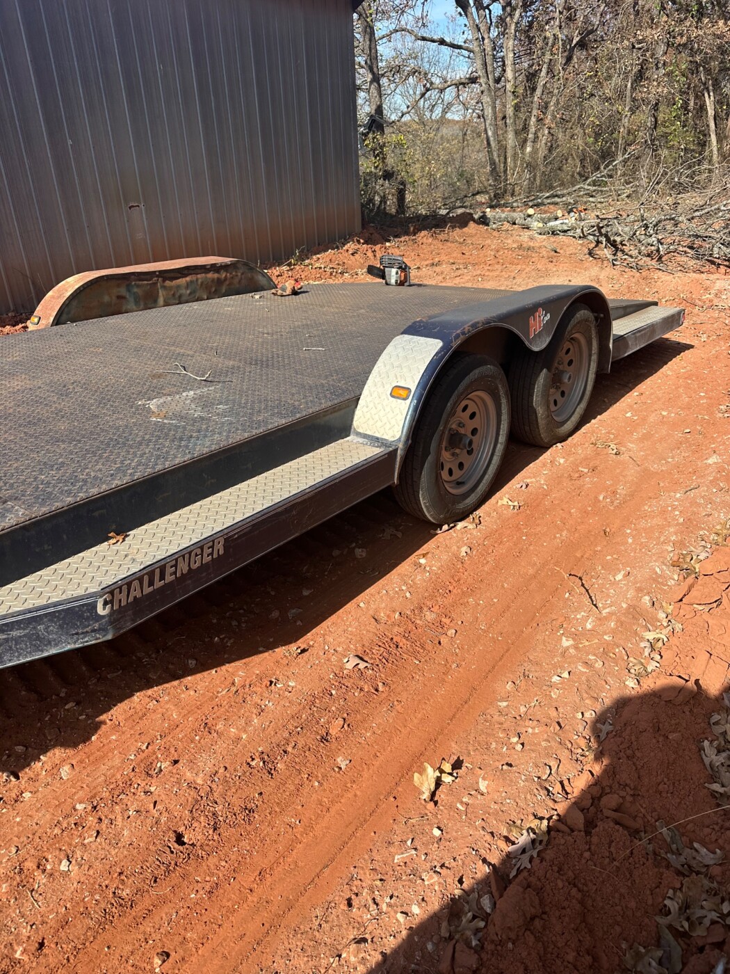 18’ Steel Floor car hauler with built in ramps and winch available.