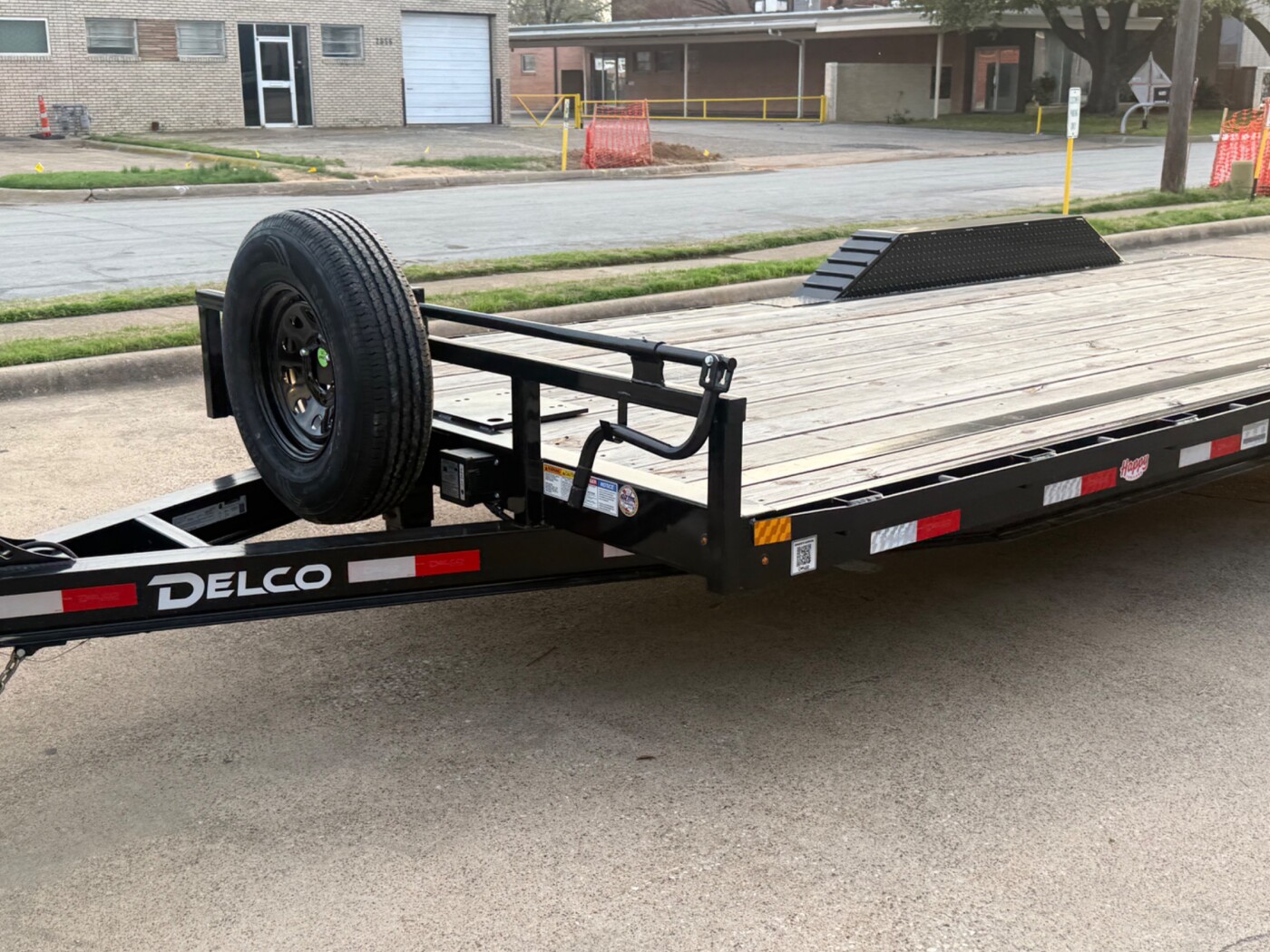 This is a brand new 2026 Delco C2 Car Hauler trailer. It has a brand new set of four straps to go with it. No winch at this current time. Floor length: 20 feet/240 inches, floor width: 8’6”/102 wide, GVWR: 12k, weight: 3k, payload capacity: 9k, axle capacity: 6k, pull type: bumper. 2 5/16” adjustable coupler, one spring loaded jack(12k), dovetail with slide in ramps, 10 ply tires, drive over fenders, 6 inch I-beam frame and tongue, treated pine, wood floor, spare tire.