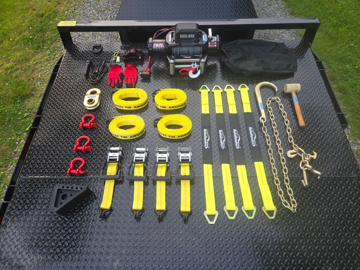 Trailer does not have ramps as the deck fully tilts by hydraulic. Winch is mounted on forward portion of the deck and may limit full deck use by 1.5ft with certain vehicles.