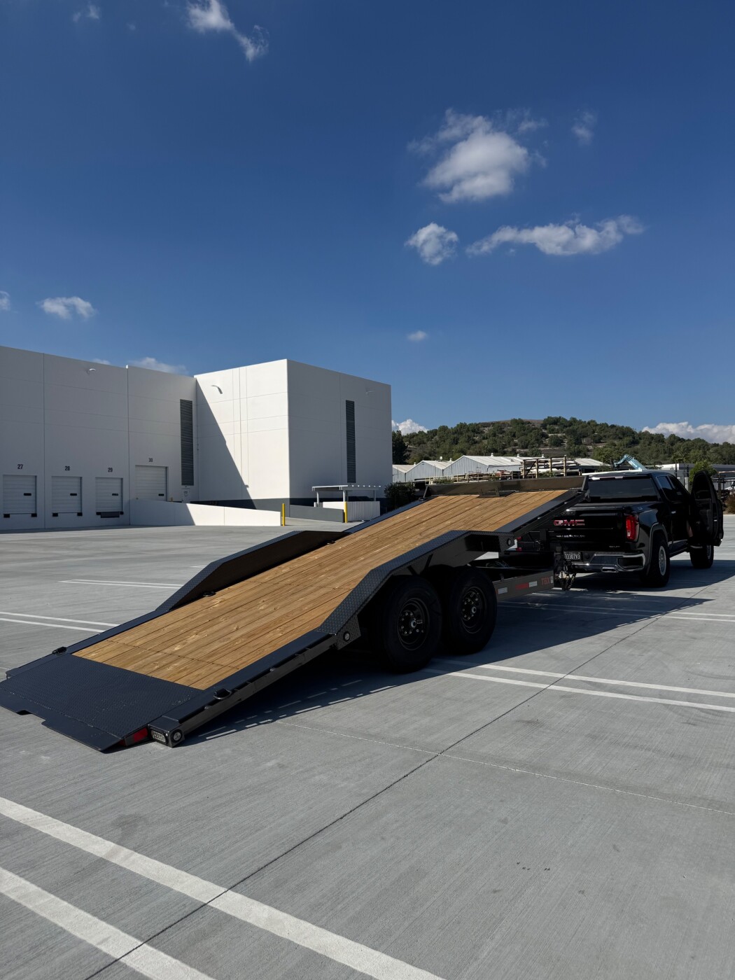 Brand New - 2026 Maxx-d Tilt trailer. This trailer comes equipped with 2x 7k axles making it a 14k car/ equipment hauler. This is a drive over option allowing you to pull bigger and wider vehicles. 12k winch with remote control and straps included.