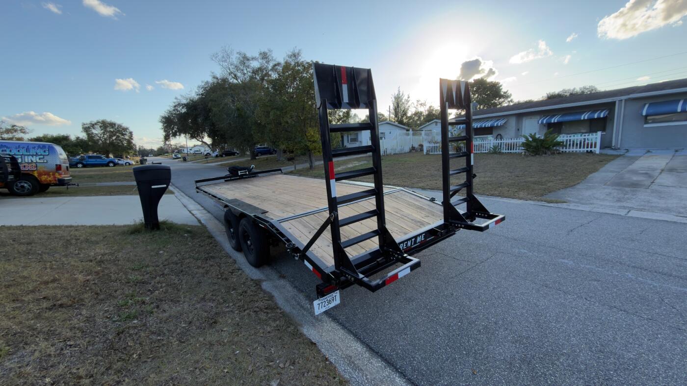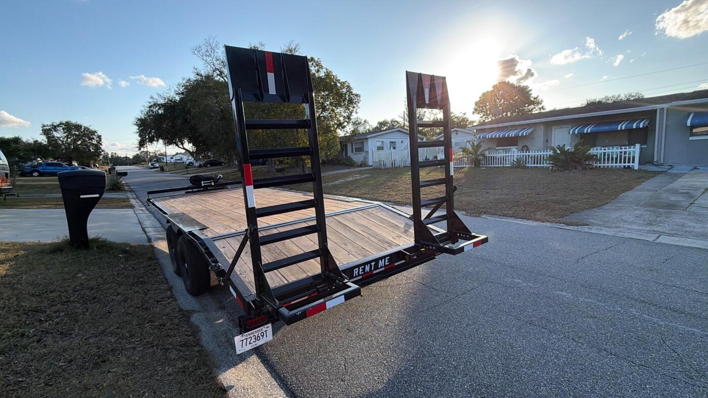 Our heavy-duty car hauler is built to handle the job without hesitation. This 20 ft x 8 ft deckover trailer comes equipped with a 14,000 lb load capacity, making it perfect for hauling vehicles, tractors, equipment, or any heavy load you need moved safely and efficiently.