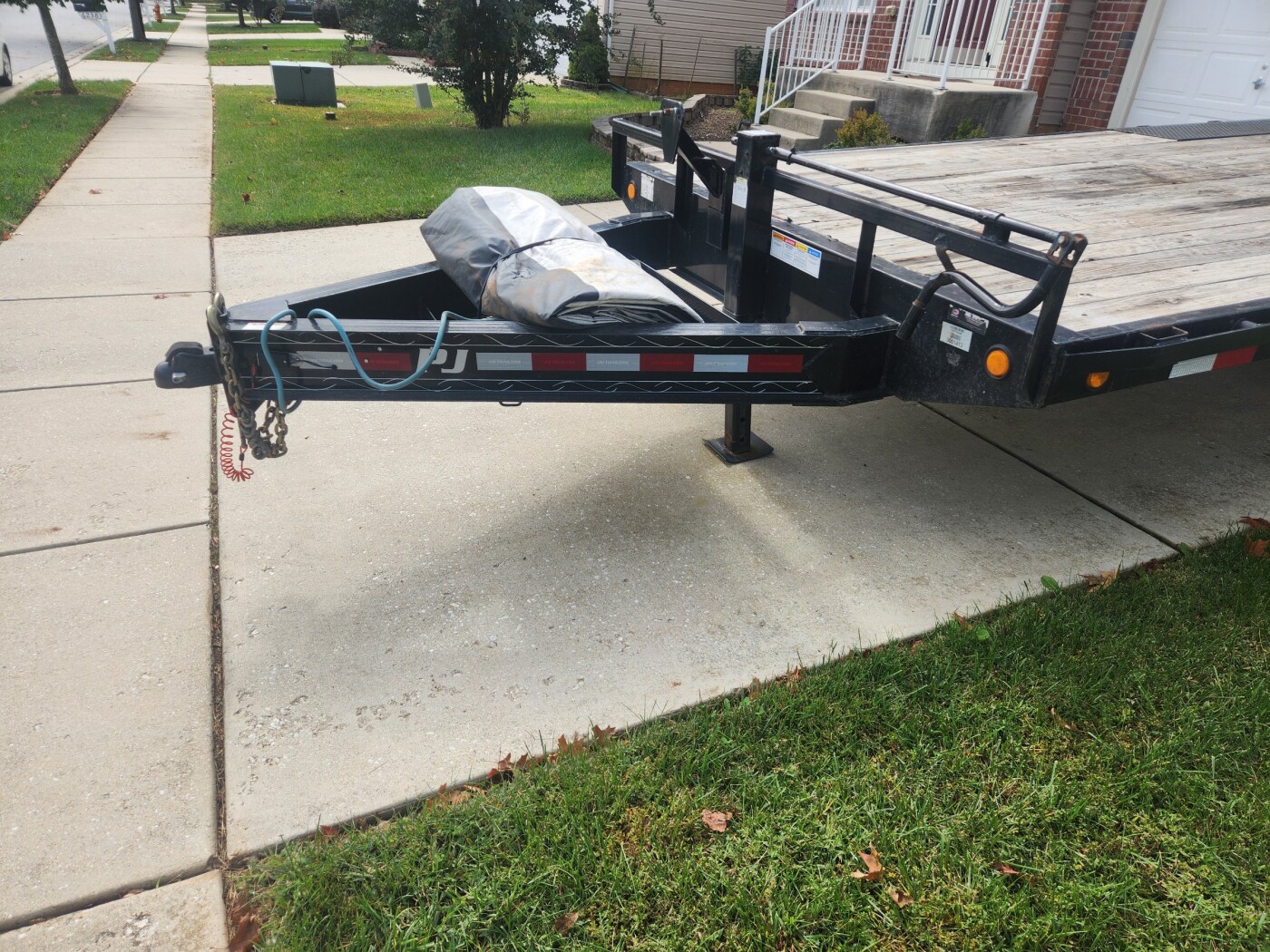 20-foot bumper pull deck over trailer with monster ramps. It has a 7-pin plug. It can hold general freight small. Heavy equipment it has a maximum capacity of 14,000-pounds. Spare tire will be included, a tarp would be included, if need to be.