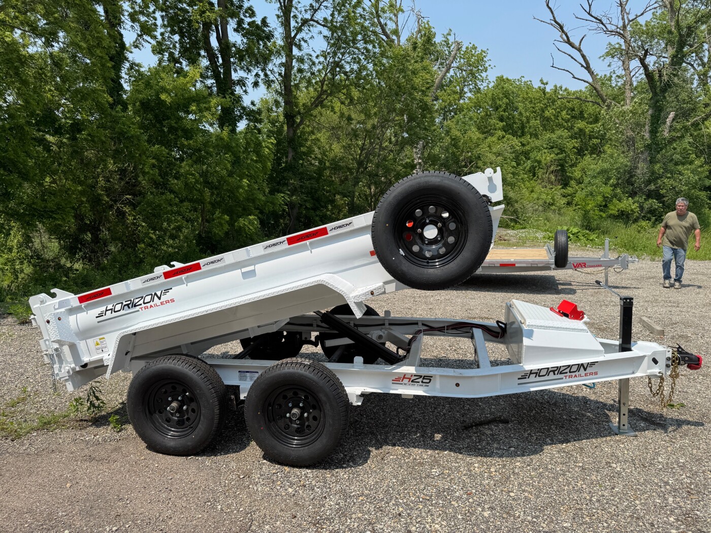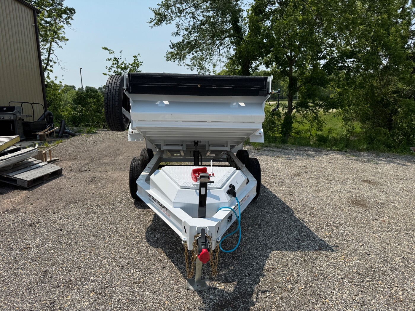 The hydraulic dump, electric brakes on both axles, and combo barn/spreader gate make loading and unloading fast and efficient without the bulk of a full-size dump trailer.