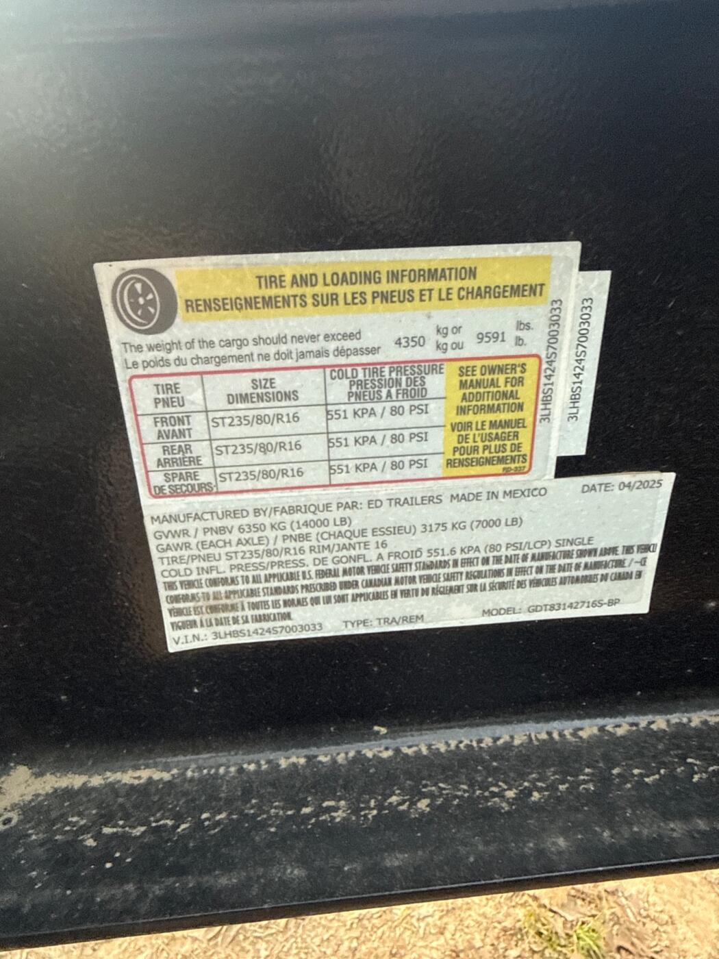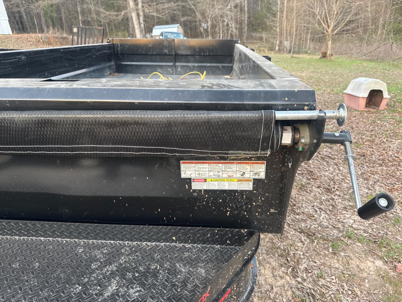 14 feet long has 7k axels and big d rings in the bed for towing has barn style doors as well as spreader gate trailer brakes running lights and tail lights all work well trailer is virtually brand new and pulls great also has roll up tarp for junk and debris removal.