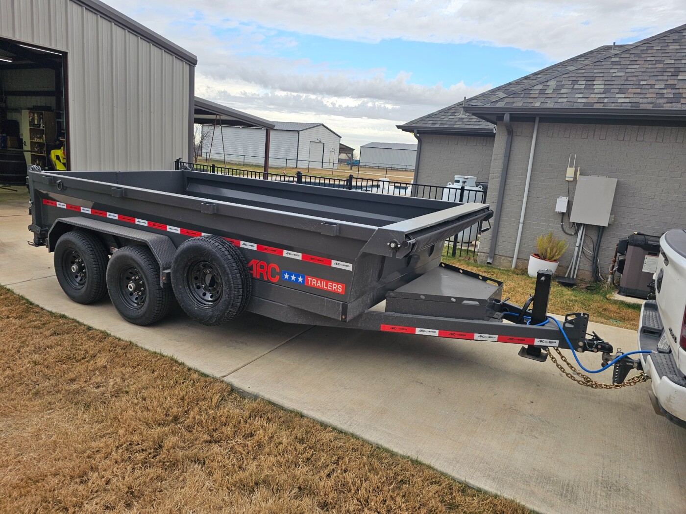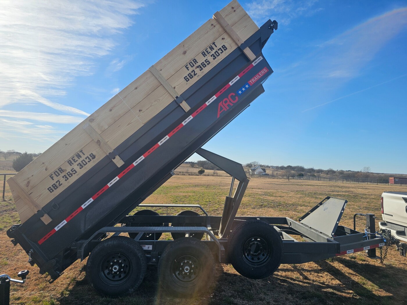7x14x2 dump trailerwith 2foot wall extensions. 14k trailer with 6.5ft ramps for loading Equipment. Has barn doors and spreader gate for unloading. Also has roll up tarp cover, spare tire and change kit for peace of mind.