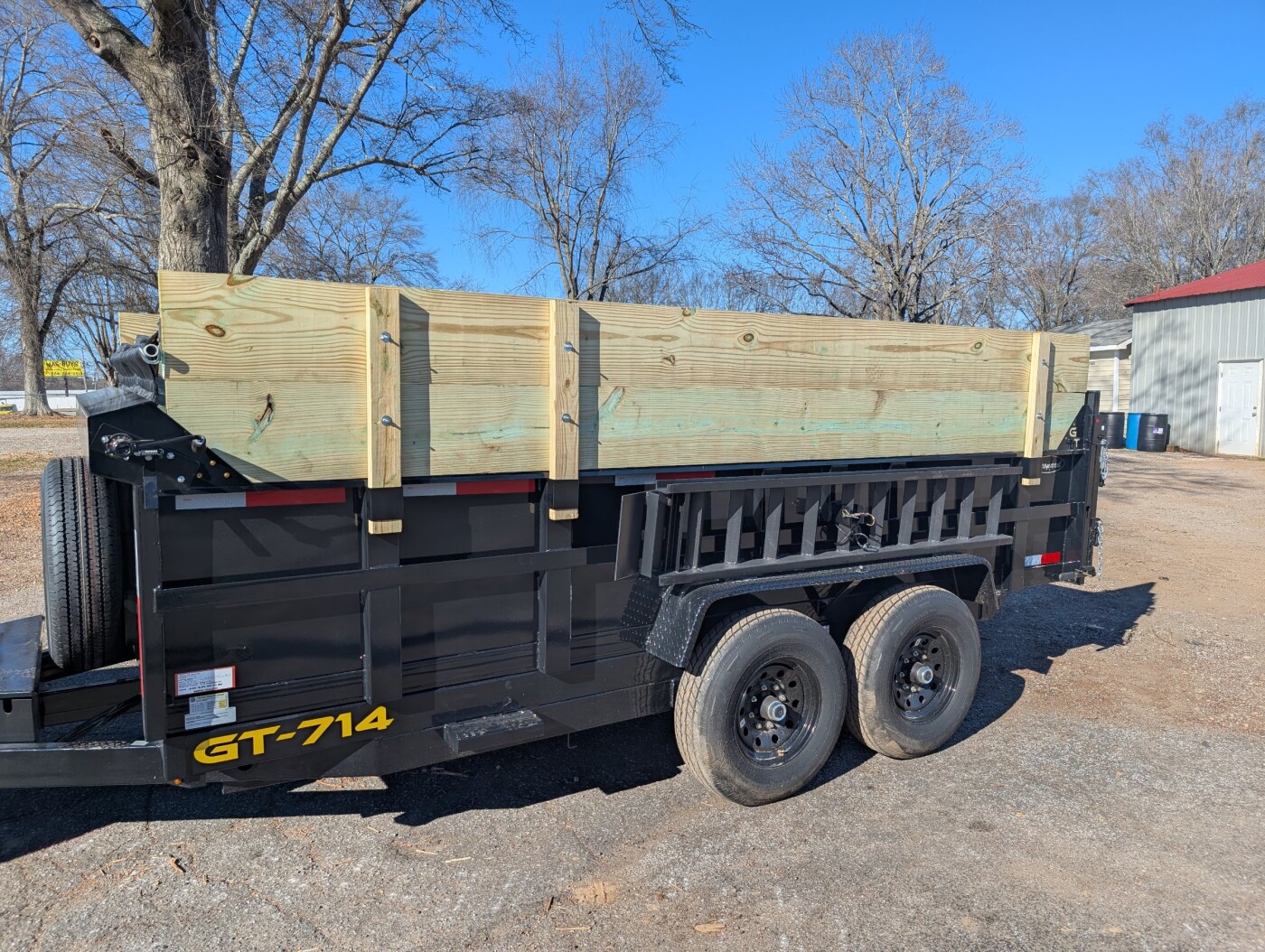 14k dump trailer duel axle with tarp, trailer brakes, spare tire.