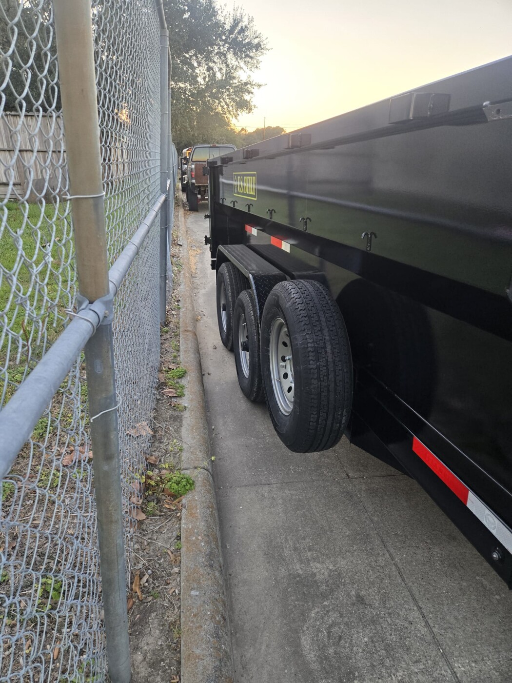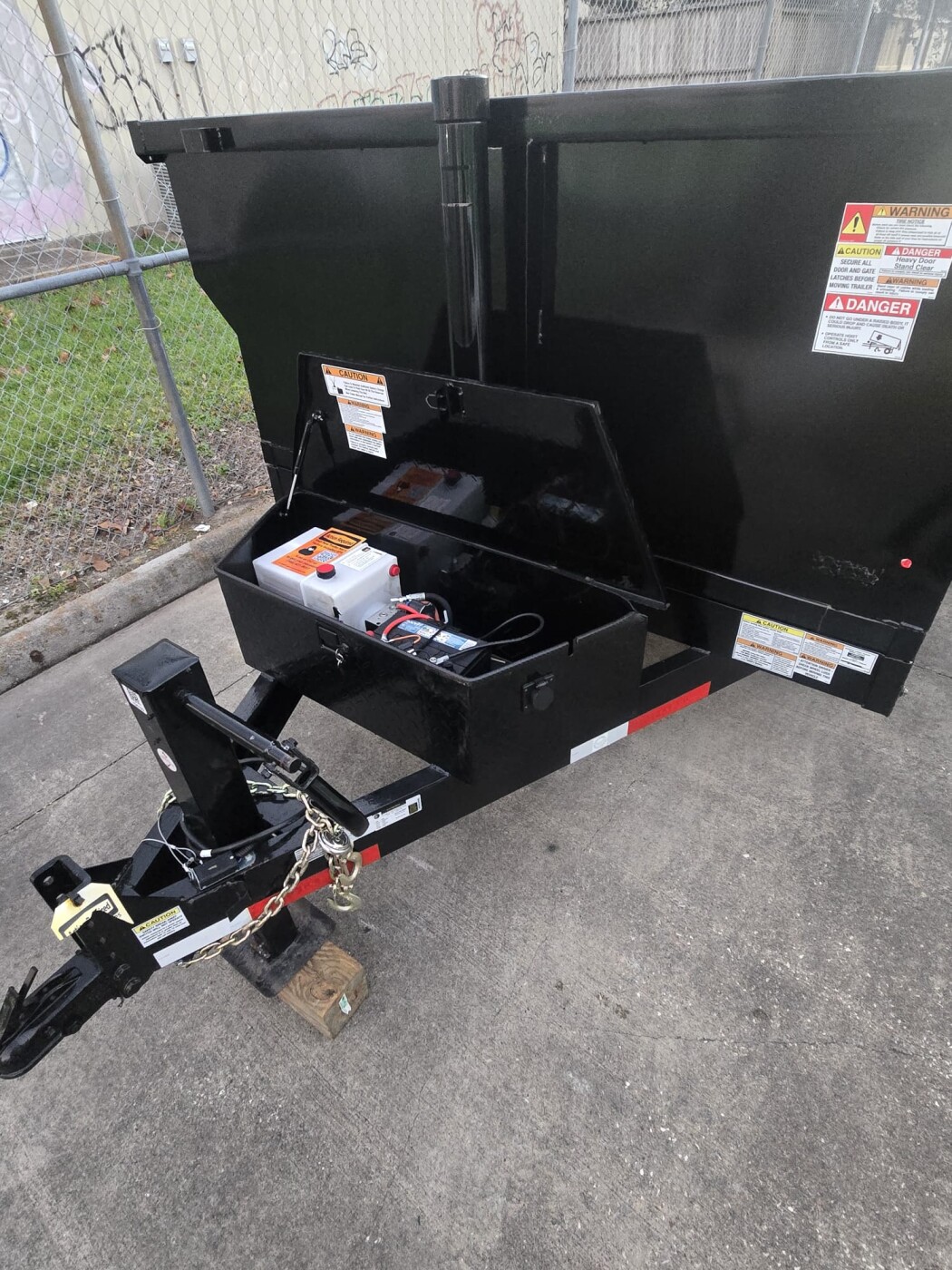 renter must ensure their truck is properly rated to tow this trailer. • 2 5/16” ball required. Brake controller required for electric brakes. • Load must be evenly distributed and secured before transport. • DO NOT OVERLOAD. No hot asphalt, hazardous waste, or prohibited materials. • Trailer must be returned CLEAN and free debris. • Renter is responsible for tire, body, or hydraulic damage & tolls