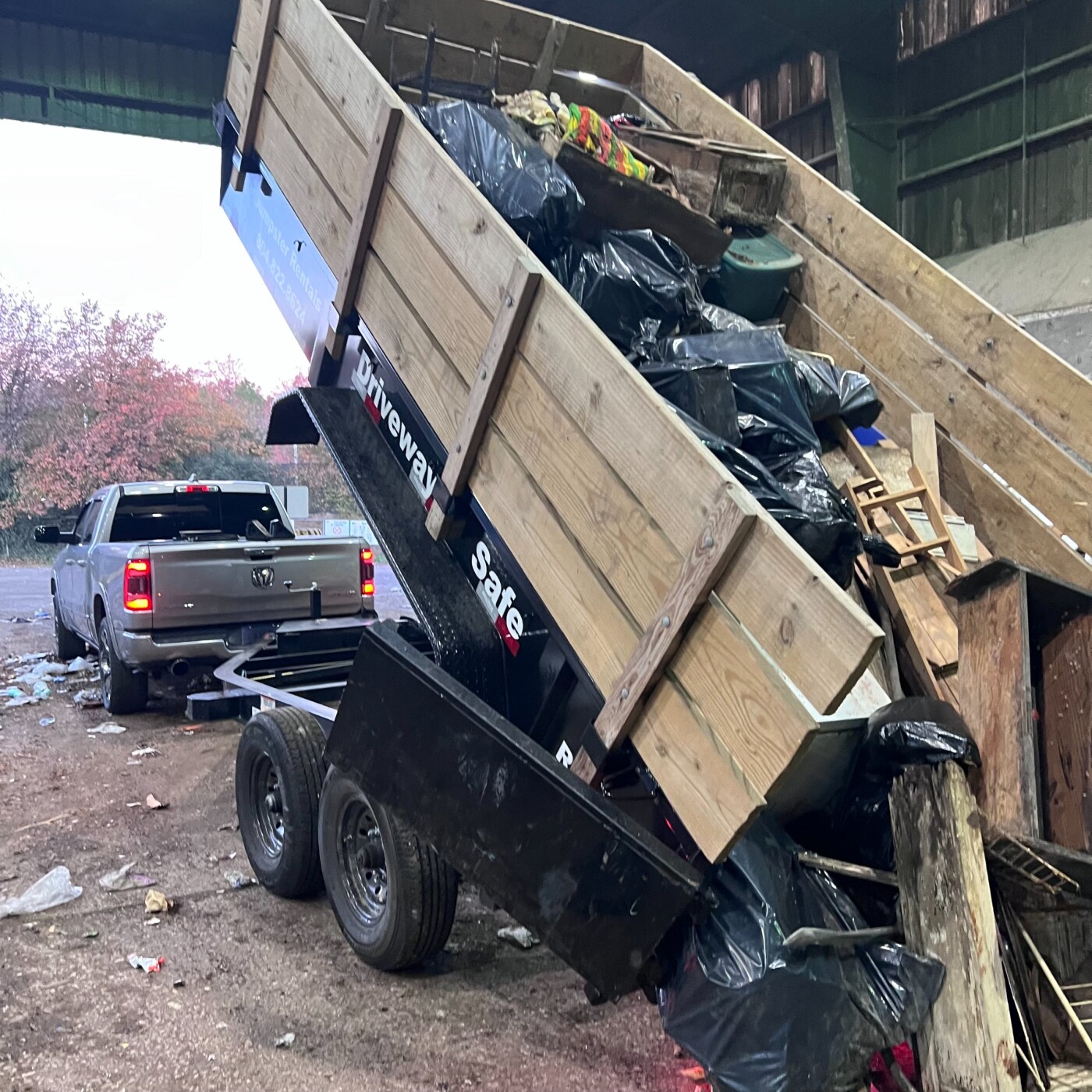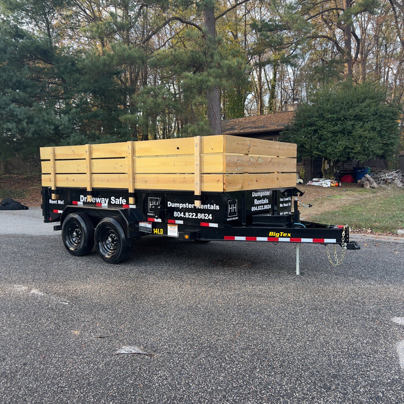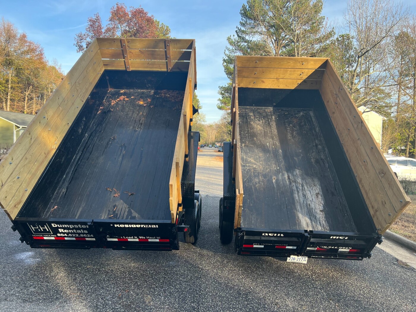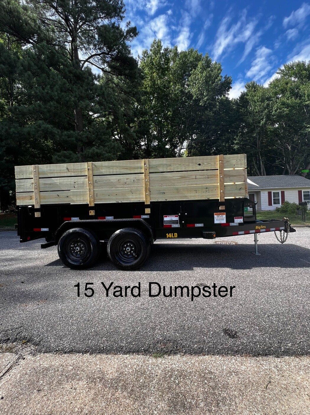 Our 15 yard dump trailer is perfect for single room renovations, office clean-outs, bathroom remodels, small to medium home clean-outs. If you feel the 10 yard dumpster may be too small, our 15 yard dump trailer is the safe choice.
