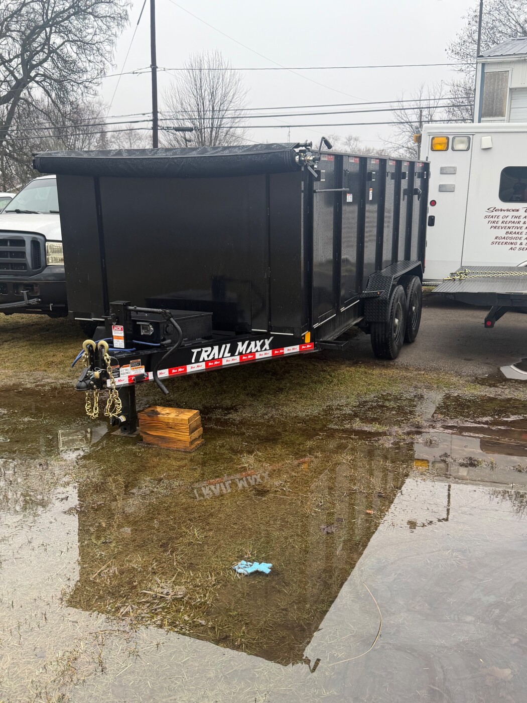 Very nice 7x16 dump trailer. Perfect for your home projects! Has high 4foot sides and a roll tarp. Unload with a touch of a button!