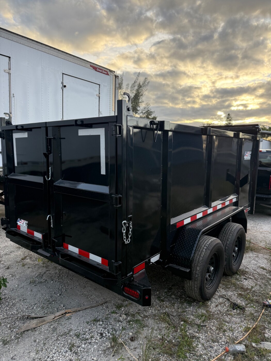 This trailer is 12’x6’x4’, equipped with ramps, tarp, barn doors, and a hydraulic to make your dump easy. You can tow it yourself, it’s driveway safe, perfect for clean out, construction debris or any junk you want to get rid of.