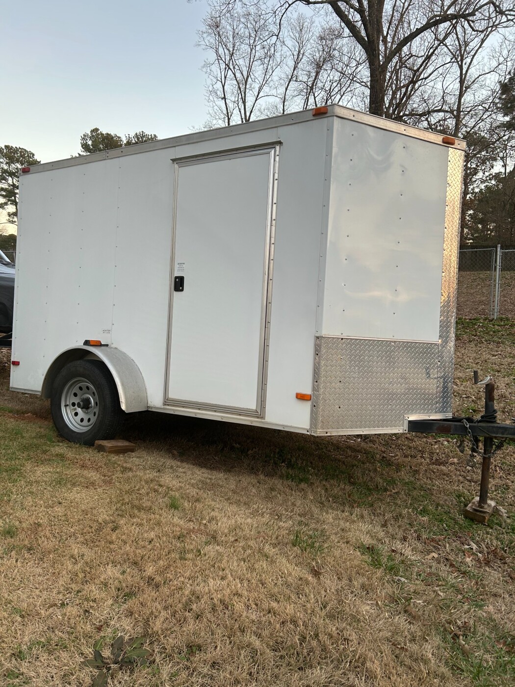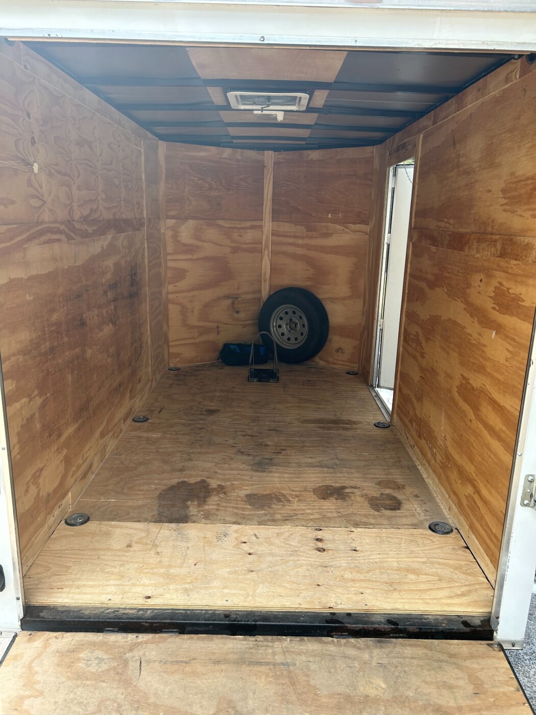 6x12 enclosed single axle trailer. Includes: spare tire, 4 rachet straps, jack, 4-way wrench to give you confidence that you have all tools necessary for a positive towing experience.