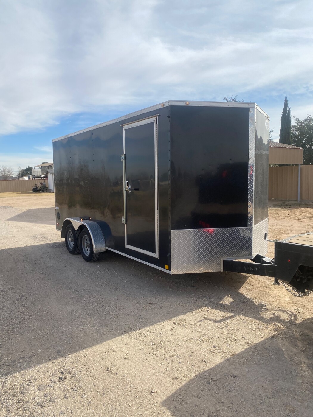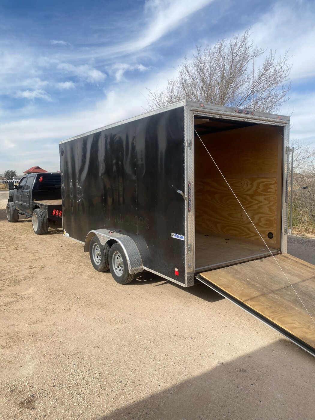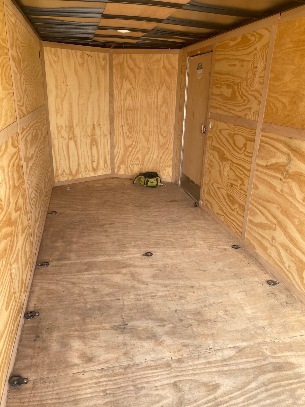 Spacious 16-foot enclosed trailer, perfect for moving furniture, appliances, motorcycles, ATVs, and equipment. Trailer uses a 2-5/16” ball hitch for safe towing. Equipped with multiple D-ring tie-downs throughout the trailer and includes 4 heavy-duty ratchet straps to secure your load. Features a rear ramp door for easy loading and unloading. Clean, reliable, and ready to go.