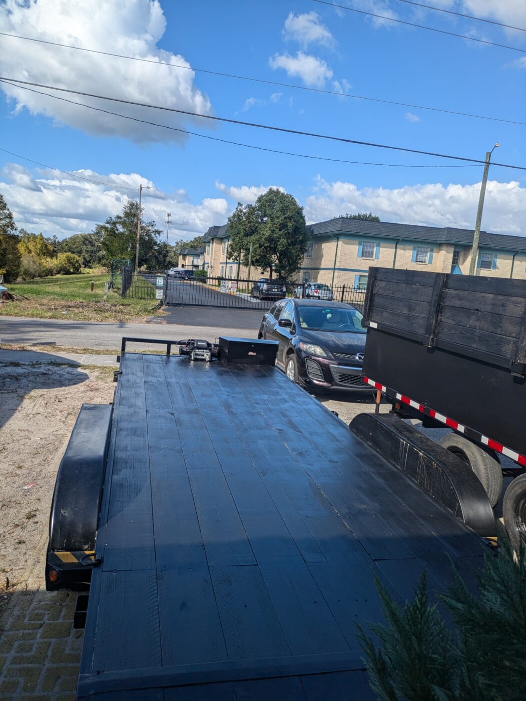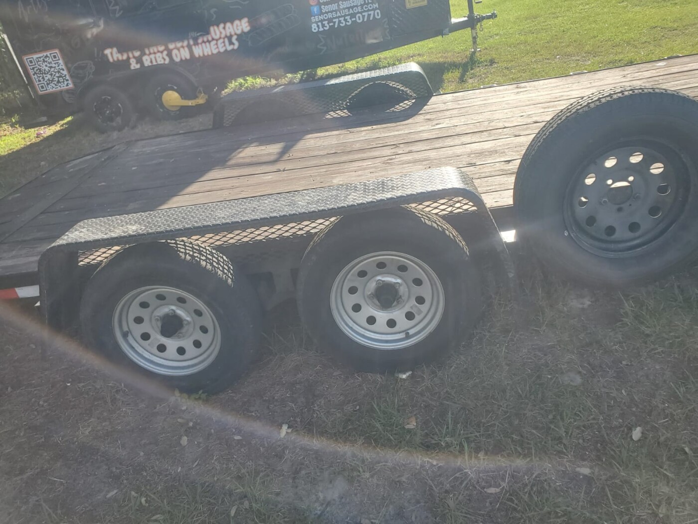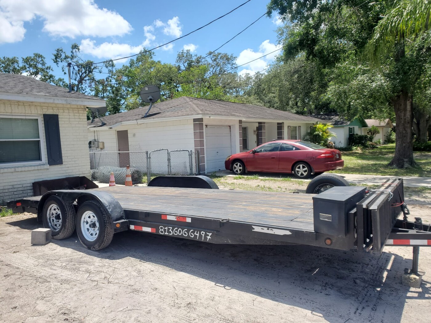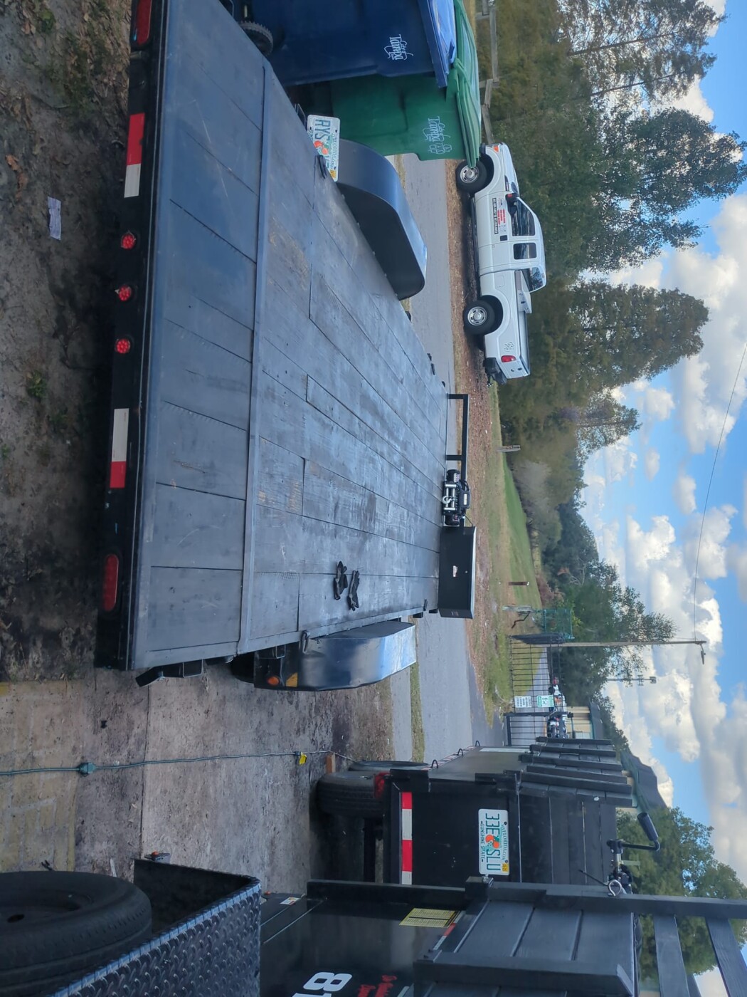 Flatbed trailer available for rent for hauling equipment, materials, and construction loads.