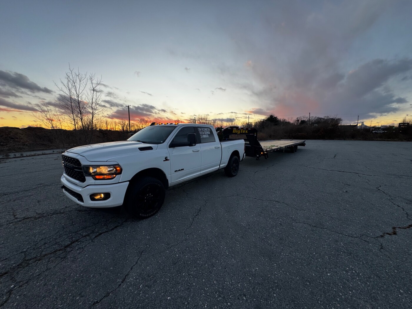 Non-CDL HOTSHOT TRAILER 16k GVWR. Comes with equipment to start hauling loads. 40' deck with mega ramps. Spare tire included. 4 chains and binders, 6 straps 4", 6 straps 2".