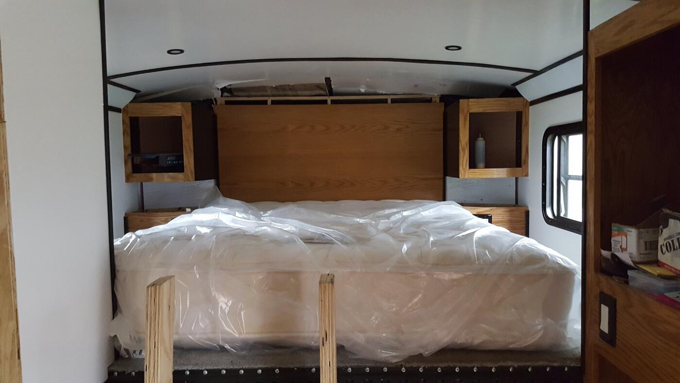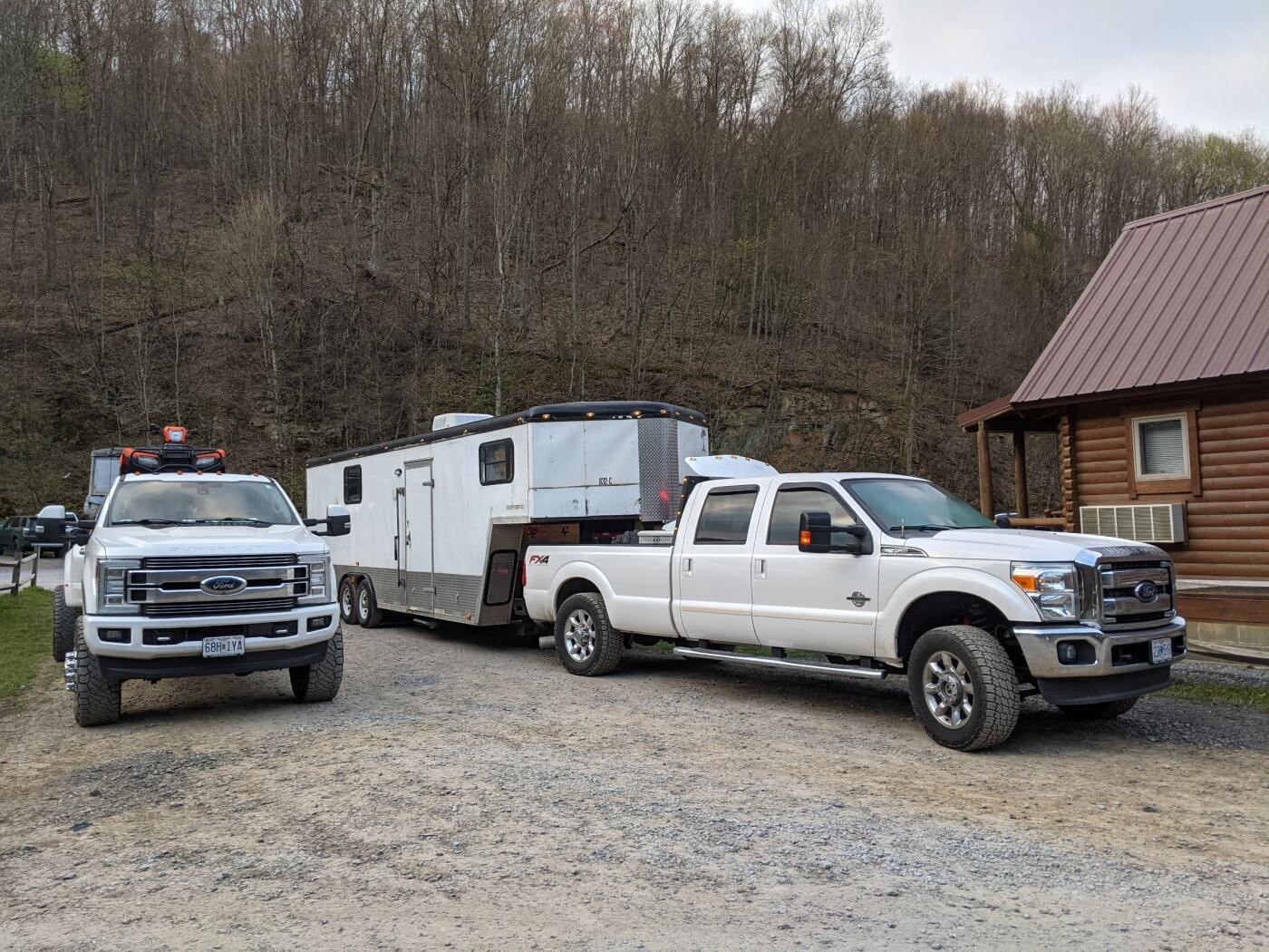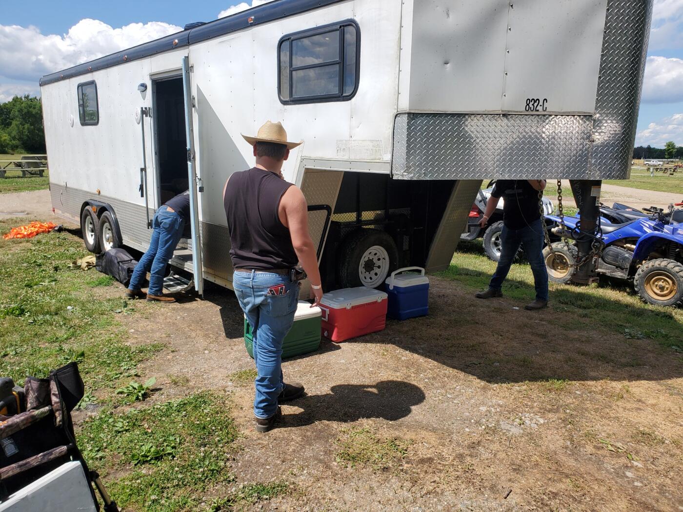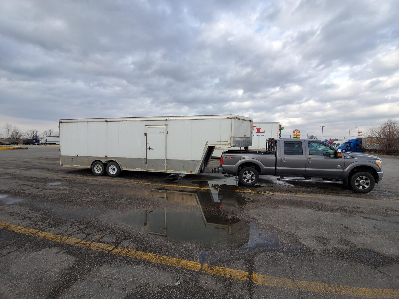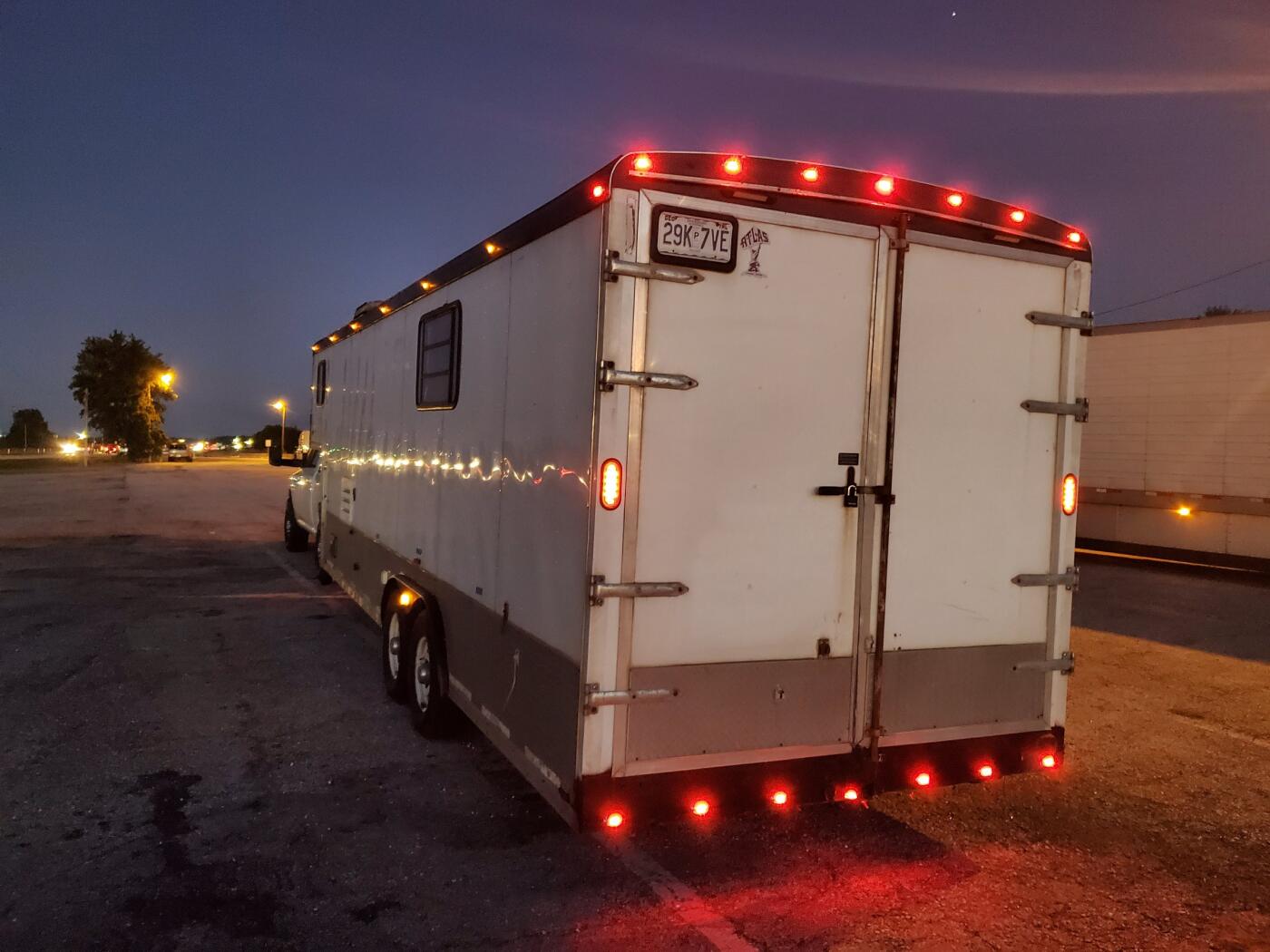 32ft converted trailer to a toy hauler by the owner and shop teacher himself. 24ft on the floor, 8ft in the neck with a queen bed. "10ft garage" but will haul up to 2 more atvs depending on lengths, or 4 atvs. Cargo rear doors, etrack on floor and walls for securing toys and gear. Ramps included. Bring your own bedding. No water at this time. 50 amp electric, and rooftop AC.