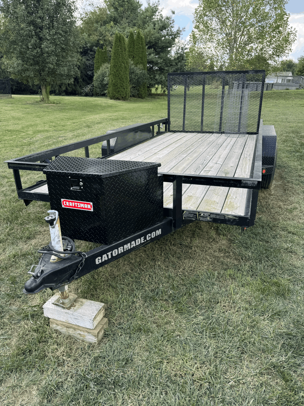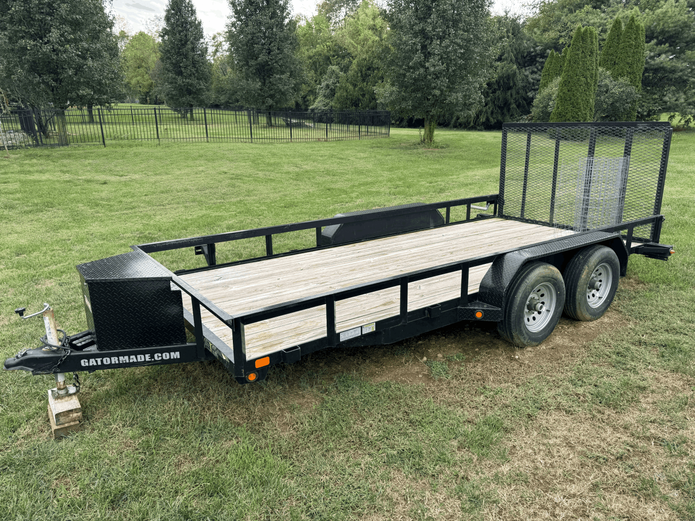 This 16-foot Gatormade utility trailer is built tough and ready for daily use. Solid steel frame, treated wood deck, and a wide loading area make it ideal for hauling equipment, materials, ATVs, mowers, and debris.