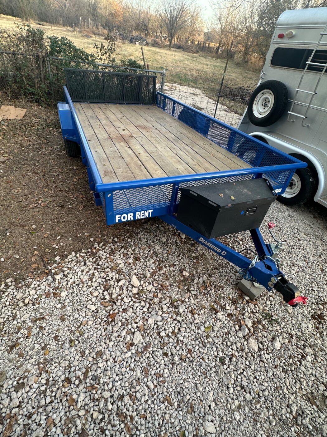 14’x83” utility with bi fold ramp lockable tongue box anchor points throughout. As always tie downs available.