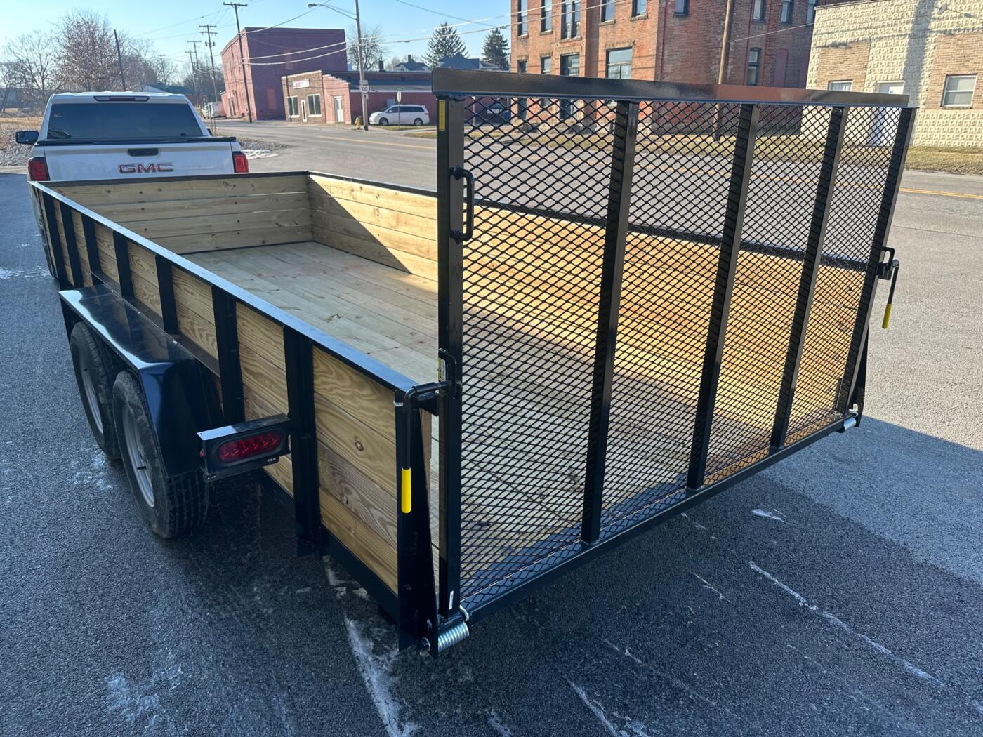 16’ by 82” Utility Trailer with electric brakes, 24” walls, and gate.